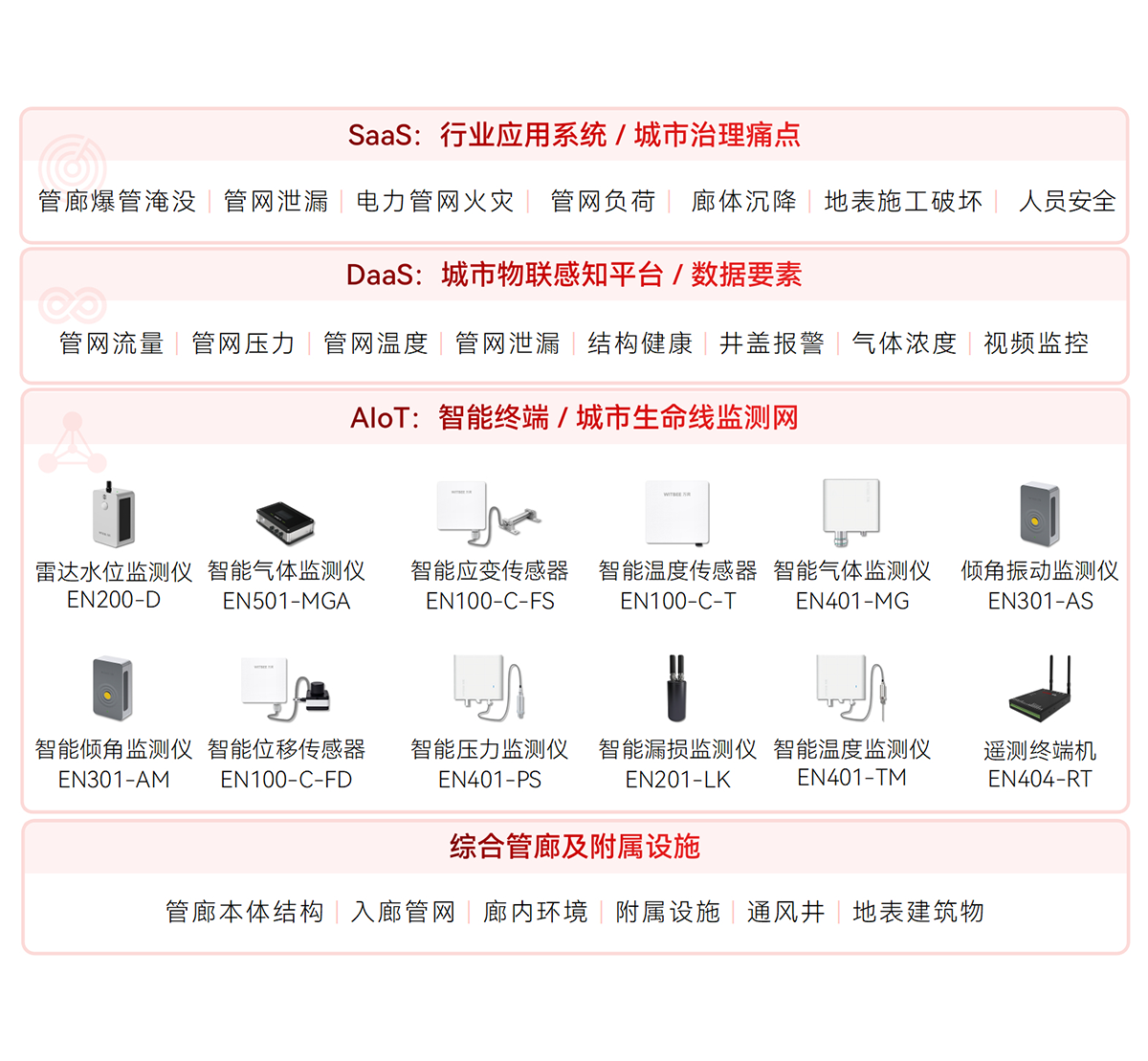 城市生命線安全運營整體解決方案,圍繞城市可持續發展道路,消除自然災害和安全生產事故對社會影響,以促進經濟安全和保障社會安全。從城市安全運行的整體角度出發,利用城市生命線智能監測儀器,透徹感知地下管網(排水、供水、燃氣、供熱)、橋梁、建筑、隧道、綜合管廊、河湖等城市基礎設施安全運行狀況,分析其風險及耦合關系,深度挖掘運行規律,實現風險的及時感知、早期監測預警和高效處置應對,確保城市運行的主動式安全保障。